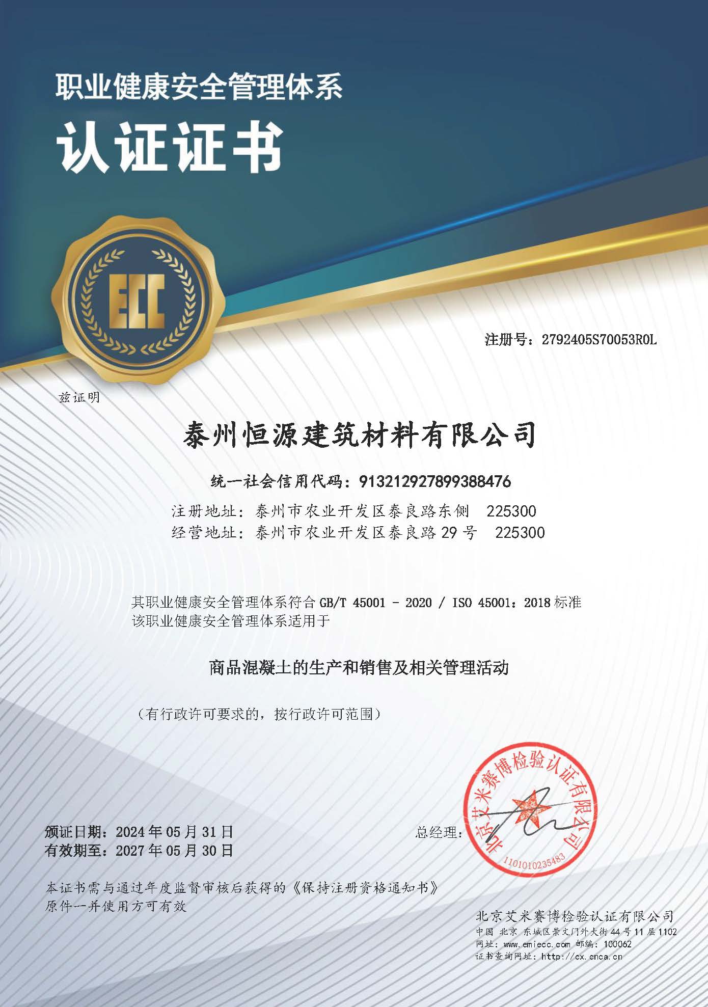 近期,泰州恒源建筑材料有限公司順利通過了GB/T14001 GB/T45001管理體系認證并已獲得了相關證書。這標志著我司已步入規(guī)范化、標準化、科學化的現(xiàn)代企業(yè)管理軌道,企業(yè)各項管理工作以及企業(yè)文化邁上了一個新的臺階。